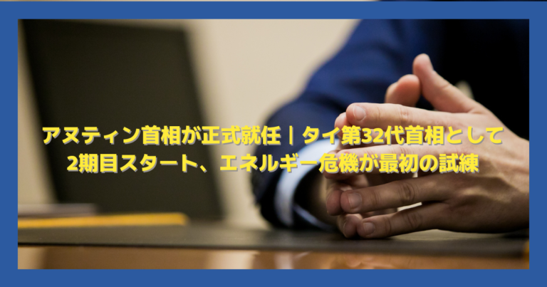アヌティン首相が正式就任|タイ第32代首相として2期目スタート、エネルギー危機が最初の試練