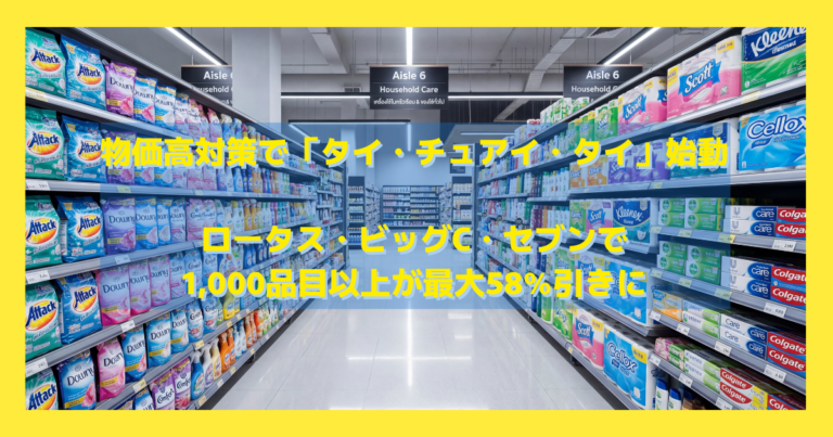 中東情勢・燃料高騰による生活費の上昇に対応するため、タイ商務省は4月1日から「タイ・チュアイ・タイ(ไทยช่วยไทย)プロジェクト〜負担軽減・生活費削減〜」を正式スタートします。全国の大手スーパー […]
