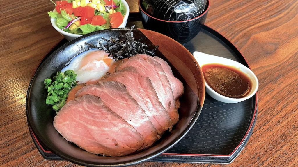 [鮭いくらごはん/ サーモン照焼/ ローストビーフ/サラダ/味噌汁]