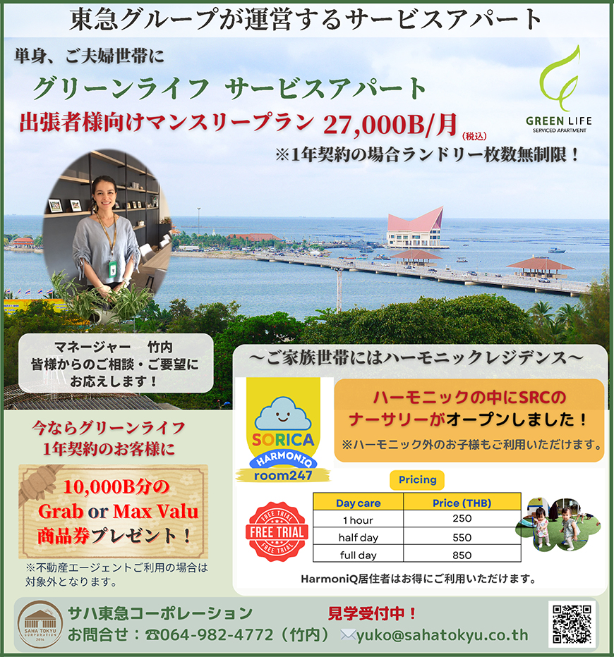 単身、ご夫婦世帯向け 27,000B~(税込み)。