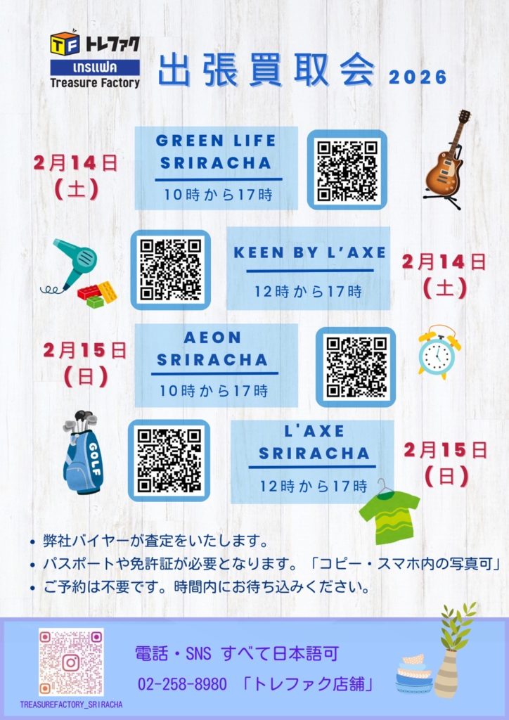 バンコクでリユースショップを多店舗展開するトレジャーファクトリーがシラチャで買取イベントを実施します!